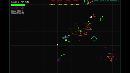 A brutal, physics-driven vector bullet hell. Build your custom arsenal, outmaneuver the swarm, and crack the boss cores before the enrage timer hits zero. Custom-built from scratch to run at a locked 60fps directly in your browser.